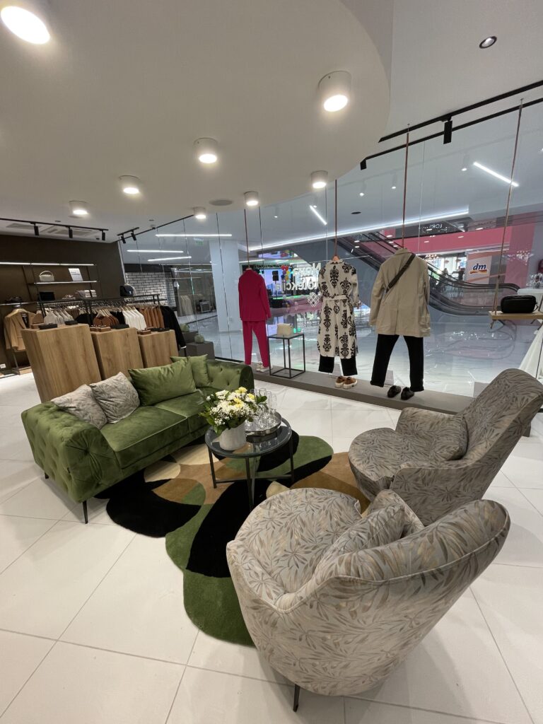Jedan od ključnih elemenata dizajna bila je upotreba visokokvalitetnih materijala, koji su se sjajno uklopili s luksuznom kolekcijom odjeće. Prostori su osvijetljeni prirodnim svjetlom, ističući detalje i boje odjevnih komada. Uređenje je pažljivo birano kako bi stvorilo dojam profinjenosti i ugode.